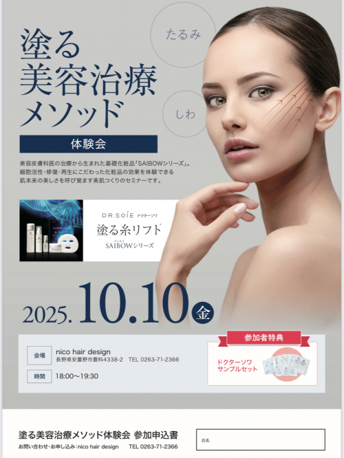 最新のエイジングケアとして注目されている「塗る美容治療メソッド」を、実際にお試しいただける特別イベントを開催いたします。